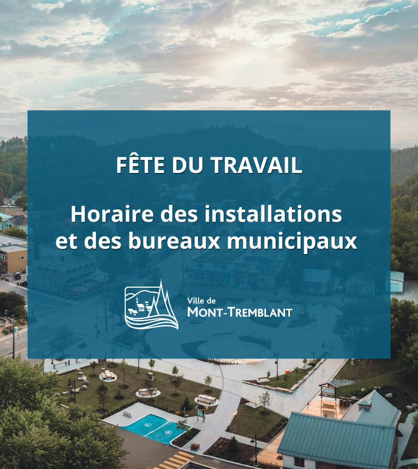 À l’occasion de la fête du Travail, l’horaire des installations et des bureaux municipaux de Mont-Tremblant sera modifié:
