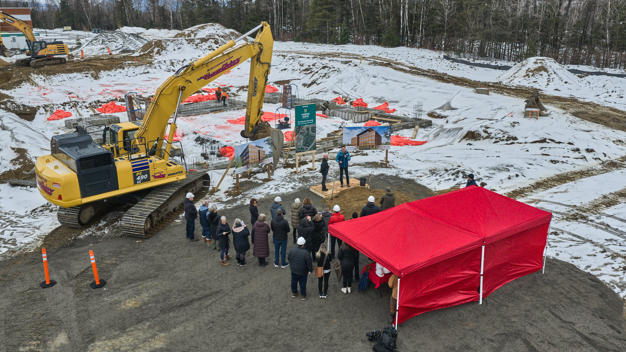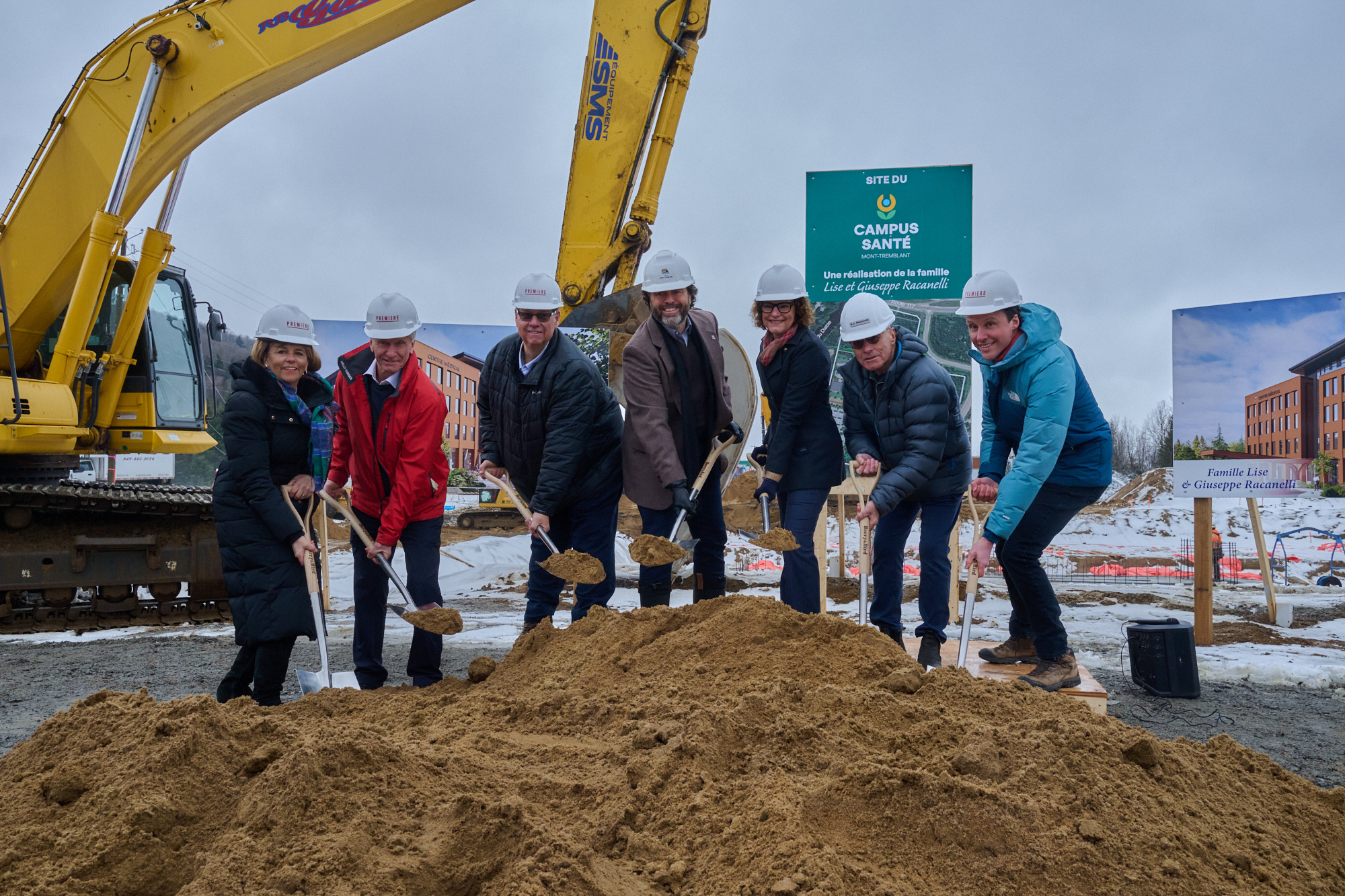 Une pelletée de terre a eu lieu aujourd’hui sur le site du Campus Santé officialisant le début des travaux de construction d’un nouveau centre médical. L’événement a eu lieu en présence de nombreux dignitaires dont Normand Laberge, directeur général, Campus Santé Mont-Tremblant, Véronique Racanelli, présidente de la fondation Lise & Giuseppe Racanelli et fille de Monsieur Guiseppe Racanelli, philanthrope et promoteur du projet, le docteur Simon-Pierre Landry, responsable du GMF du Grand Mont-Tremblant, Chantale Jeannotte, députée de Labelle et le maire de la Ville de Mont-Tremblant, Pascal De Bellefeuille.